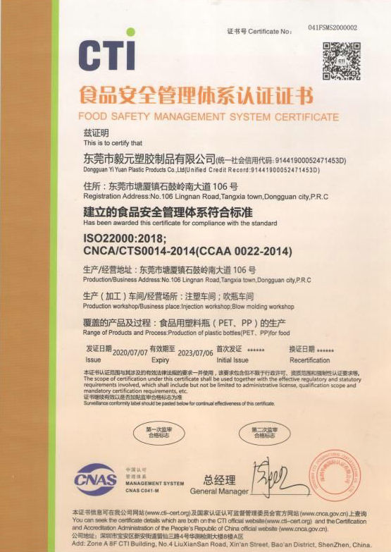東莞市毅元塑膠制品有限公司專業生產藥品、保健品、食品、飲料瓶,醬料調料瓶,嬰兒奶瓶和化妝品等的包裝容器,瓶身采用進口的PP、PC、PCTG、ABS、PET等原料。 公司先后取得了食品包裝生產許可,ISO22000等生產資質。車間為封閉式的潔凈車間,嚴格按照標準執行生產,同時引進多臺全自動上料機,吹瓶機,打包機等自動化設備,大大提高了生產效率和產品的優質率。